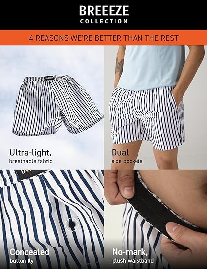 These are the lightest boxer shorts you’ll ever wear. Whether you’re lounging around at home or going for a quick trip to the neighbourhood grocery store, these are the ultimate casual, yet classic boxer shorts for men. Ultra-Light Fabric Featuring 100% durable soft cotton, it’s a Breeeze to step into the ultra-light boxer shorts. It’s so light, even tedious tasks will fly by! No pockets, no party What’s the fun without pockets? These printed boxer shorts come equipped with dual pockets for all that fun stuff! Early morning walk in your boxers? You know where to put your house keys and wallet. Smooth touch These boxer shorts are matte finished, which means they’re ultra-smooth to the touch and feel blissful on your skin! No marks, only comfort The microfibre waistband on these boxer shorts is soft, it leaves no stretch marks on your waist — even after a long day of chilling!