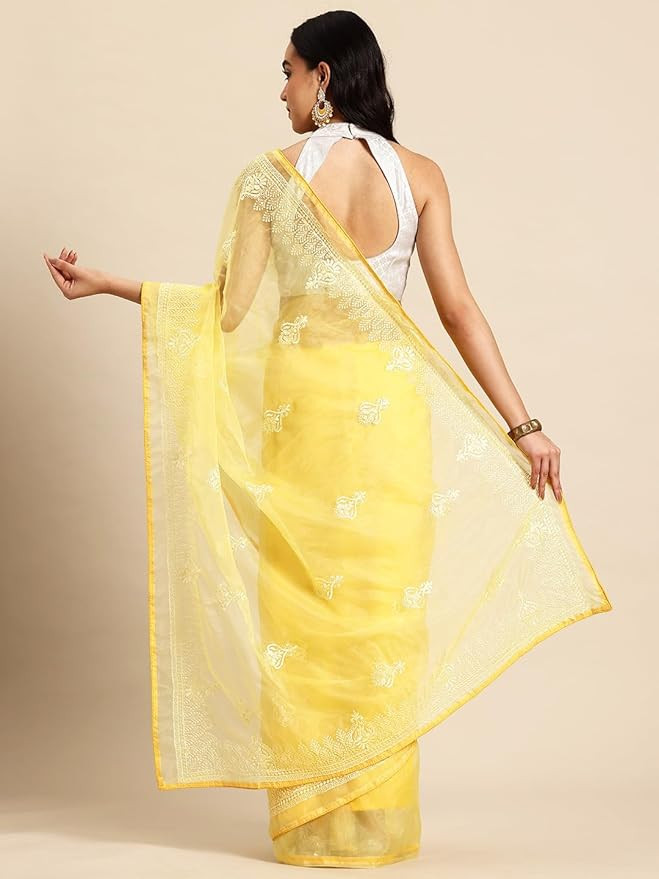 MATERIAL: Premium Silk Blend fabric with delicate white embroidered details throughout the saree, offering elegant draping and comfort DESIGN: Pastel colour saree featuring intricate traditional embroidery patterns along borders and body OCCASION WEAR: Perfect for formal events, festivals, weddings, and special occasions requiring sophisticated ethnic attire