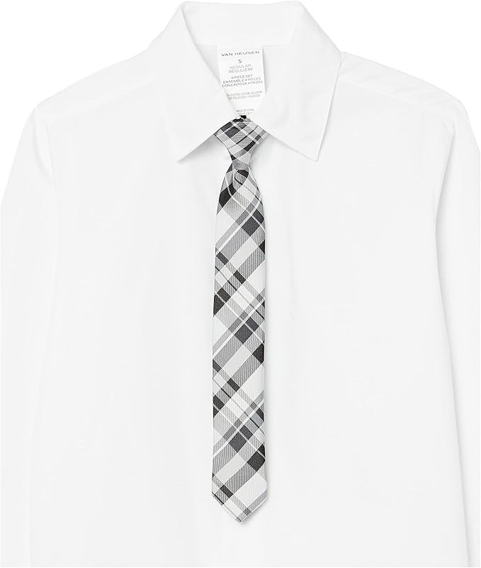 Includes a highly-wearable classic white shirt made from crisp cotton featuring regular fit, mid-spread collar, clip-on tie, double-barrel cuffs and standard curved hemline