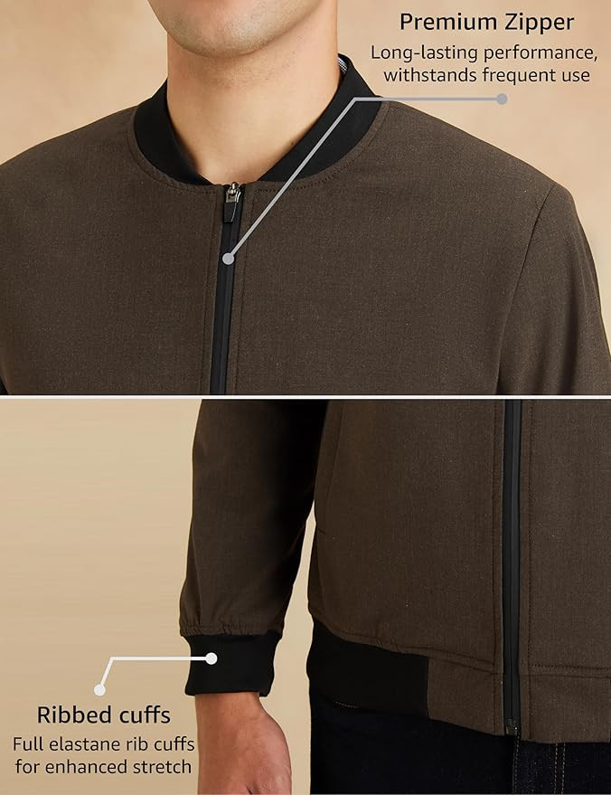 Smart Casual Jacket featuring non quilted stretchable lining for ease of movement Enjoy effortless comfort all day, with wrinkle-resistant fabric Premium blended fabric of polyester, viscose, and elastane High-performance ribbing with elastane for enhanced fit and recovery Sleek, sophisticated, and stylish: The perfect jacket for formal occasions