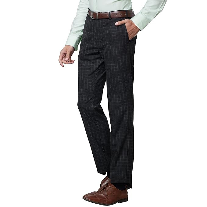 Fabric : Polyester Blend Color : Dark Grey Front Style : Flat Front Pattern : Checks