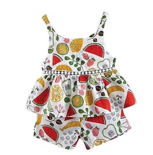 Baby's Girl's Sleeveless Fruit Printed Top and Short Set for Kids