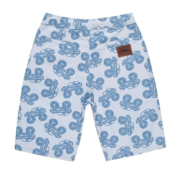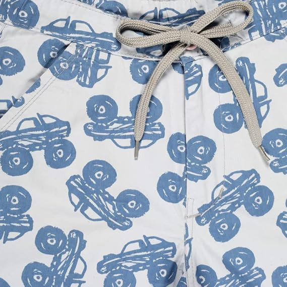 Adjustable elastic inside + Drawstring outside + Buttons Regular fit- fits most boys as per age given Length - 18" To fit boys waist-27inches; Knee Length Pattern Type: All Over Print; Age Range Description: Kid; Colour Name: Blue Truck