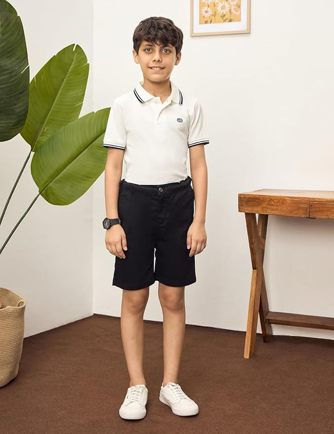 Fabric: A stretchable blend of 98% cotton and 2% elastane, offering comfort and durability, ideal for active summer days. Fit: Regular-fit Chino shorts designed for comfort, perfect for casual wear and active play. 12-14 Year