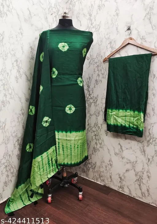 Unstitched chanderi cotton shibori bandhani suit Material
