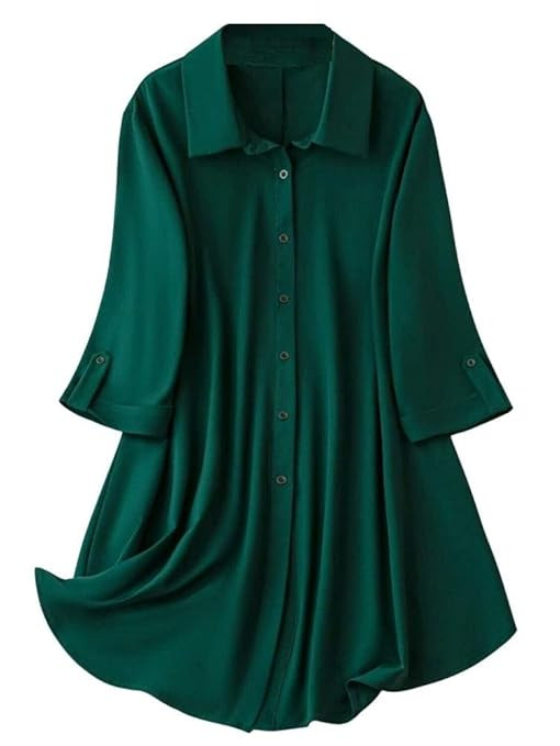 Leriya Fashion Western Dress || Rayon Solid Button Front Shirt Dress for Women || Roll Tab Sleeve & Collared Neck Flared Dress || Office || Summer Short Dresses .