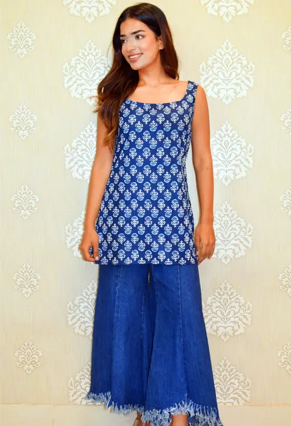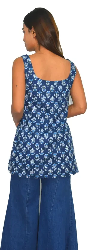 Hand Block Print broad Neck, Halter style sleev less top. Made in best of the cotton fabrics printed