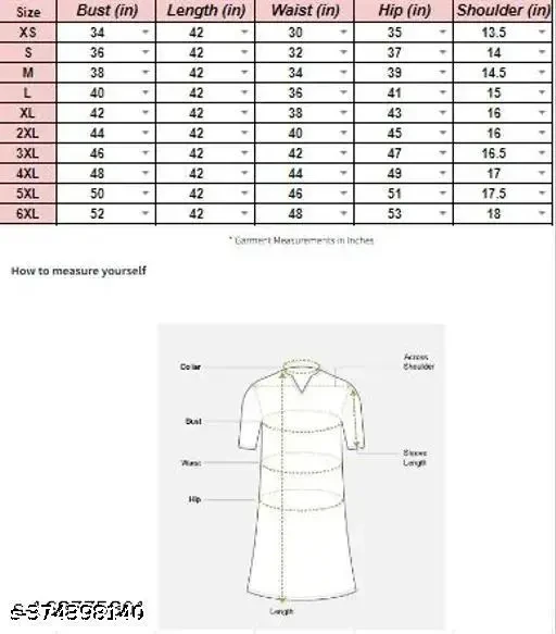 XXS, XS, S (Bust Size : 36 in, Shoulder Size: 14 in, Kurta Waist Size: 32 in, Kurta Length Size: 42 in, Bottom Waist Size: 32 in, Bottom Length Size: 40 in)