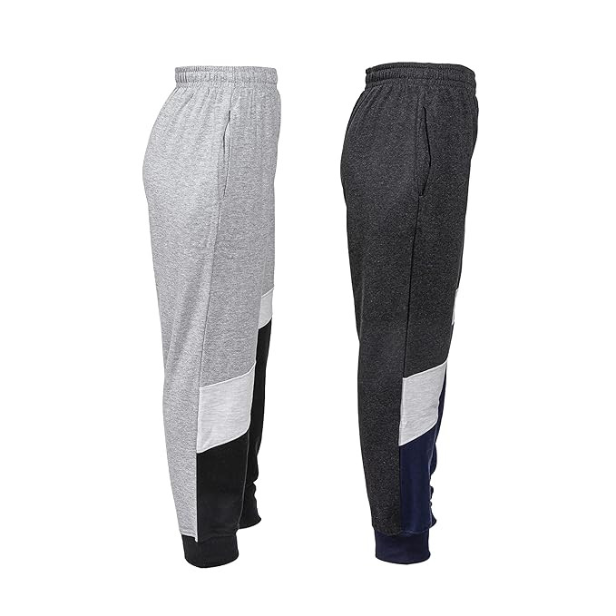 Smart set of 2 track pants or joggers in 2 colours grey and navy blue best used for sports and outdoor casuals. Soft fabric and comfortable fit with stylish look with lycra rib at leg opening