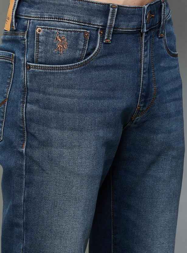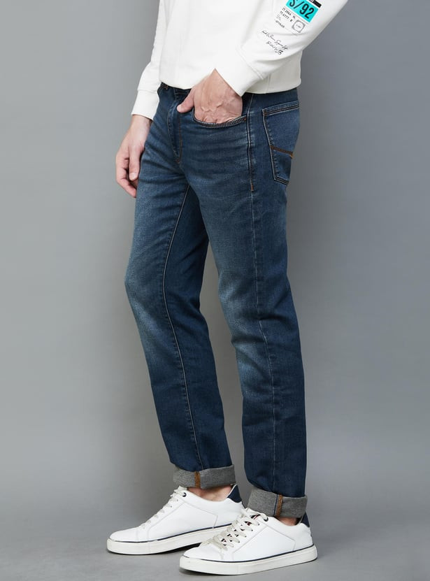 A versatile yet sleek staple, this pair of stylish skinny-fit jeans is crafted with a 5-pocket construction that ensures maximum utility and comfort. It is highlighted by a washed effect for an enhanced look, a button and zipper fly for a secure fit, and also includes waist loops for a belt.