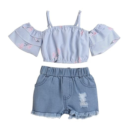 Girls Cotton Stripe Print Blouse And Shorts Set