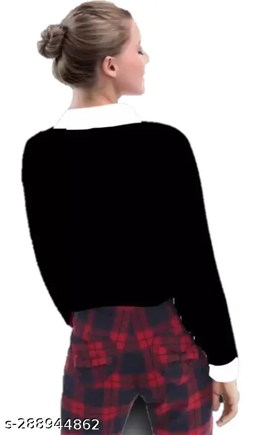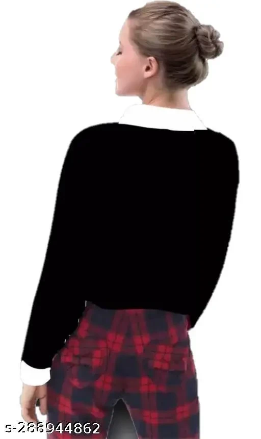 Name : Pinovo Women's full Sleeve Premium white colar Tshirt