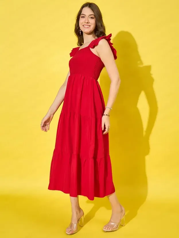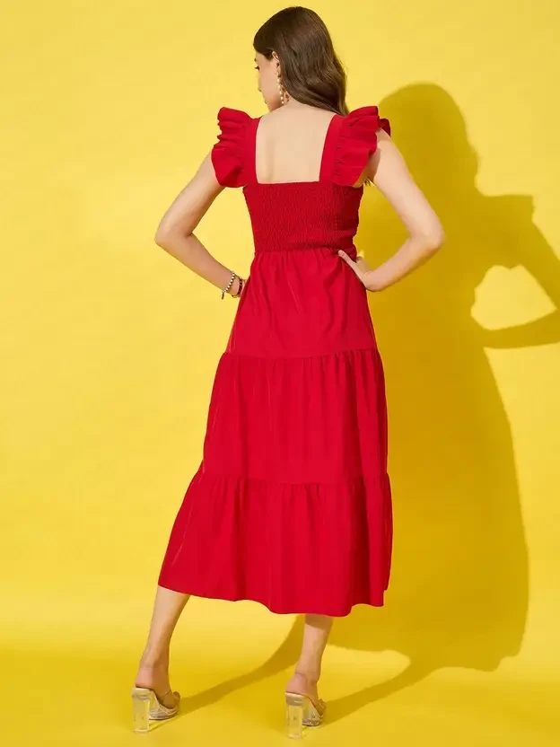 his charming maxi dress features a square neckline and ruffled straps, made of polyester, adding a feminine touch to your wardrobe. The smocked high waist creates a flattering silhouette, while the flowing skirt enhances movement. Perfect for summer outings or casual gatherings, this dress combines style and comfort for any occasion. The model (height 5'8) is wearing a size M.