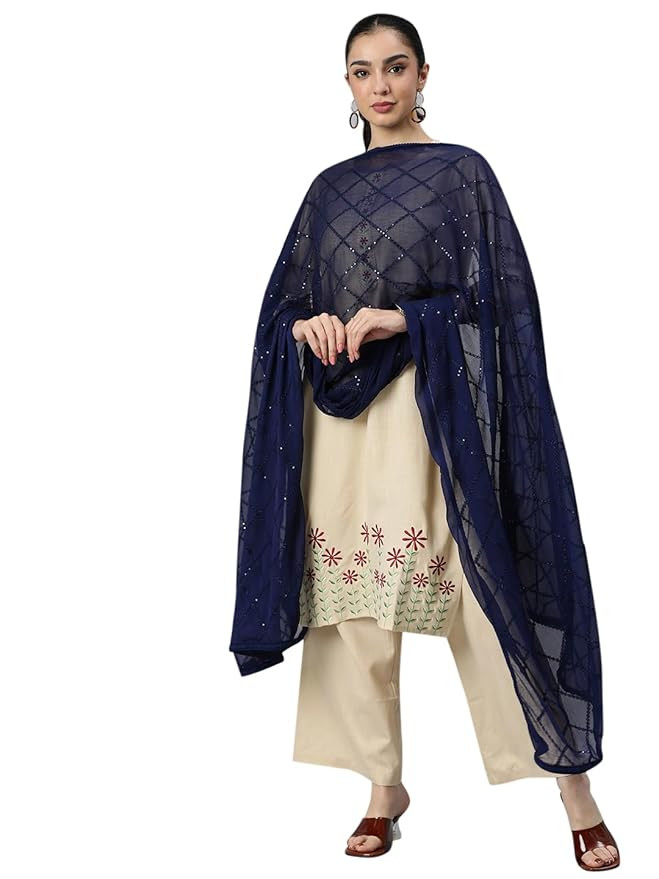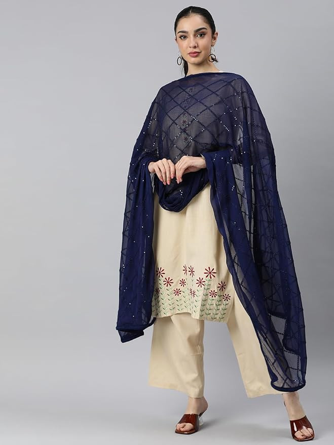 Rani Saahiba Soft Chiffon, Thread and Sequence Embroidered Dupatta With Lace. Material : Chiffon Care Instructions/Wash Care : Dry Clean. Do not iron directly on fabric. Package Contents: 1 Dupatta. Brand : Rani Saahiba, Occasion : Daily, Party, Festival and Occasion Wear Dupatta