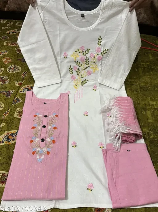 New and Trendy Women Printed Kurta and Pant Set with Dupatta. This Cotton Kurta Set for Women Is Designed to Offer Both Comfort and Style. with Its Straight Cut and Modern Design, It Is Perfect for Various Occasions, Whether You Need a Festival Kurta Set or a Casual Kurti Set. Made from Cotton Fabric, This Regular Wear Kurti Set for Women Ensures a Soft and Breathable Feel Throughout the Day. the Intricate Prints on the Kurta Add a Touch of Elegance and the Vibrant Colors Make It a Fashionable Choice. the Simplicity of This Kurta Set for Women Is Its Charm. It Features a Straight Kurta That Falls Gracefully and Is Paired with Comfortable Pants. they Included Dupatta Completes the Look. Not Only Is This Kurta Set Suitable for Casual Outings, but It Also Makes an Excellent Office Wear Option. the Combination of Style and Comfort Makes It a Versatile Choice for Women Looking for an Ethnic Kurta Set for Women Party Wear. the Latest Design of This Kurti Set for Women Ensures That You Stay On-Trend and Make a Fashion Statement. the Set Is Carefully Crafted to Provide a Flattering Fit for All Body Types, Enhancing Your Natural Beauty. Don't Miss Out on This Fabulous Kurti Set with Dupatta for Women. Upgrade Your Wardrobe with This Simple Yet Stylish Ensemble That Effortlessly Combines Traditional Elements with Contemporary Fashion.