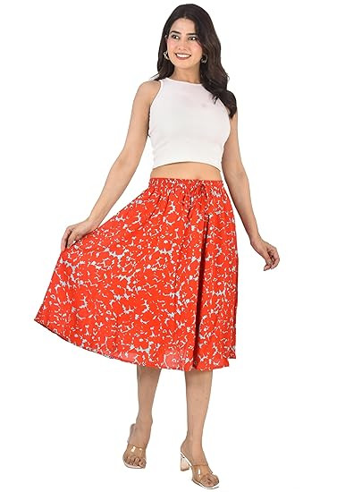 Women's Rayon Midi Skirt Multi Coloured